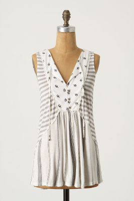 Here is one.september's Celeste Tank. This tank fits TTS. I'm wearing an XS. I love all of the different patterns, the monochromatic colorway and the length. I can see wearing this with some bright colored shorts or pants. Very cute, light weight, comfortable and flowy.