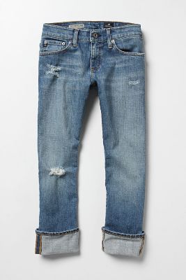 Here are the AG Tomboy Crops. These fit a bit big, but since they are Tomboy I'm guessing that is the way they are supposed to fit. I'm wearing a 26 here and you can tell they are big and baggy. I normally wear a 25, but I don't think that would make a big difference. These are very comfortable since they aren't tight and I like the fit. The length is good folded or unfolded and would be cute worn either way.