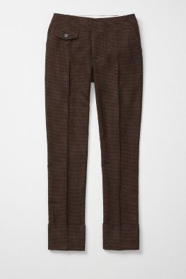 Schuler & Sons Stacked Strap Heels Style# 20875720 Color: Taupe Price: $168 | Hoss Intropia Rakish & Roughhewn Heels Style# 21276761 Color: Gold Price: $278 | Daughters of the Liberation Dapper & Dashing Trousers Style# 22532105 Color: Brown Motif Price: $118 |