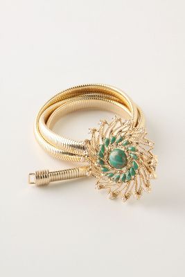 Swirled Suns Headband Style# 23907389 Color: Gold, Ivory, Black Motif Price: $32 | Sinuous Bow Belt Style# 23892805 Color: Black Price: $38 | Emeraldine Oxford Heels Style# 22556617 Color: Green Price: $148 |