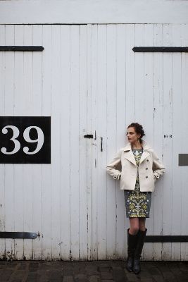 Asymmetric Cropped Peacoat Style# 25215948, Ivory, $178