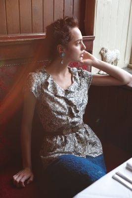 Loosened Ruffle Blouse Style# 25242553, Grey Motif, $88