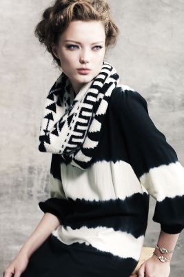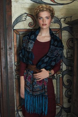 Vinifera Sweater Dress ($148) with Suede-Fringed Scarf ($78), Braided Hoska Belt ($48) and Vivi Bracelet ($28)