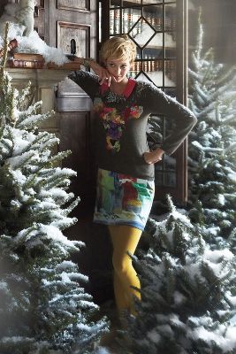 Dimensional Doe Pullover ($148) with Bouganvillea Vines Handpainted Denim Skirt ($148) and Bewitched Bloom Collar ($148)