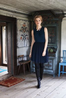 Sasonger Tulle Dress ($168) with Brass-Heeled Knee Boots ($298), Jaguar Charm Necklace ($198) and Opaque Tights ($15)