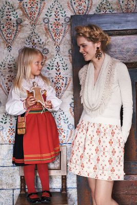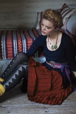 Modern Obi Pullover ($88) with Pleated Polka-Dotted Skirt ($98), Eleflower Necklace ($118), Geo Sweater Tights ($38) and Jacquard Ankle Socks ($24)